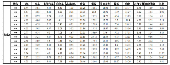 ◆國內游客在本省的人均旅游消費支出及消費結構,包括:一日游游客的人均旅游消費支出和非一日游(過夜)游客人均旅游消費支出