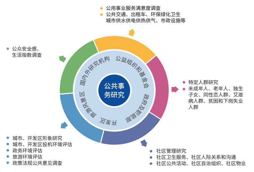 主要研究范圍包括教育、金融、公共衛生、就業、交通、養老服務、社區發展等方面的調研咨詢項目。